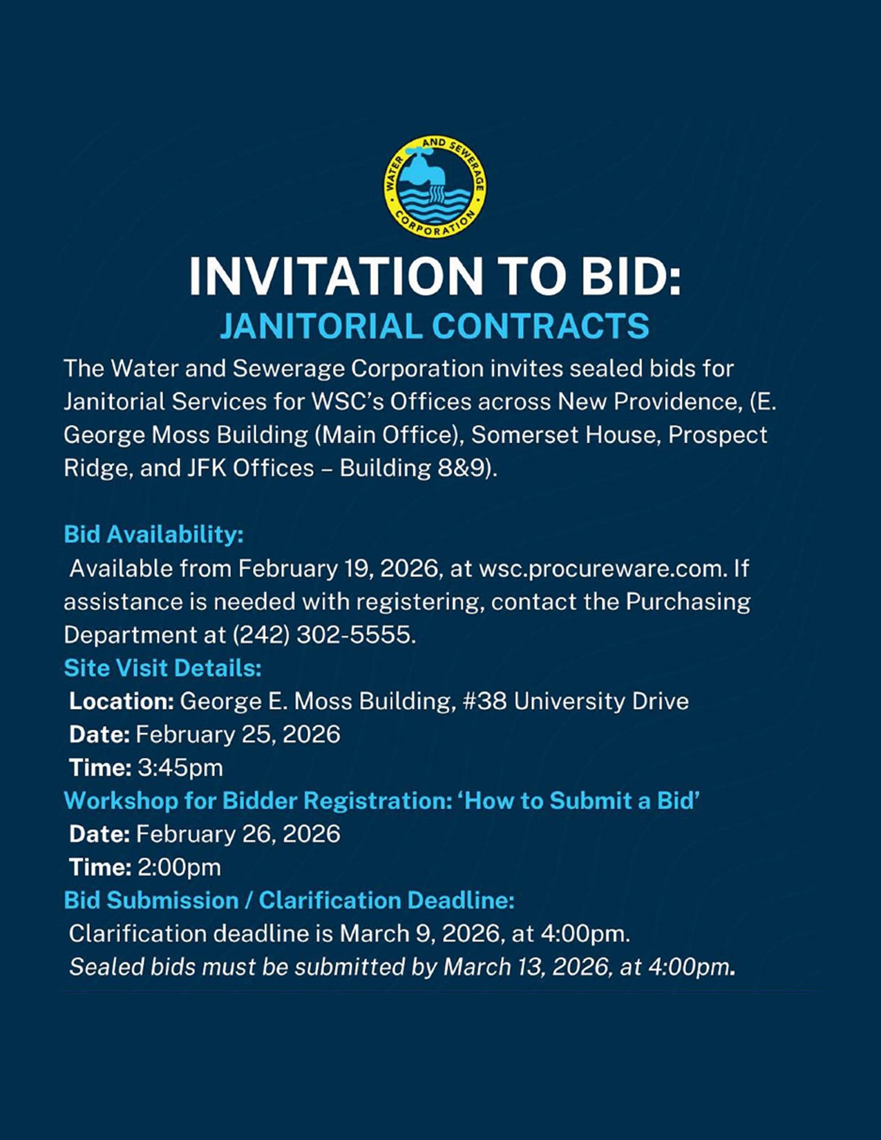 About the WSCSince 1976, The Water and Sewerage Corporation has been committed to fostering growth and excellence in service quality through the management, upkeep, distribution, and development of water resources. The Corporation has a team of over 400 dedicated employees across the nation who share a passion for delivering service excellence, which is the guiding light that drives and sustains the relationships with customers, employees, and the communities that the Corporation serves. To learn more visit wsc.com.bs or our social media pages (Facebook, Instagram, and You Tube).Contact:Nikolette Elden | T: 302-5742 |E: wcnelden@@wsc.com.bs