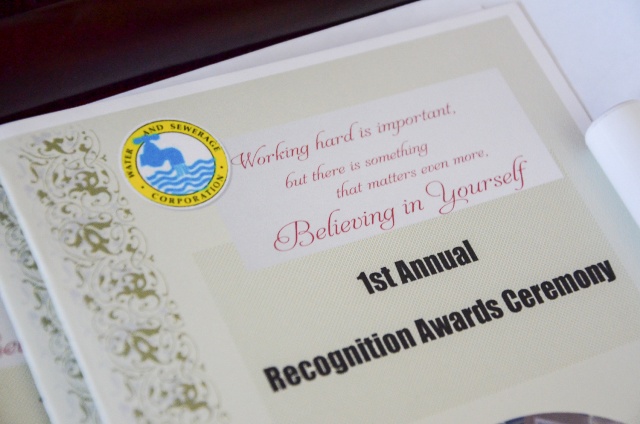 Nassau, Bahamas – Two employees at Water and Sewerage Corporation (WSC) were recently awarded for their outstanding service to the corporation at a ceremony held in their corporate offices.